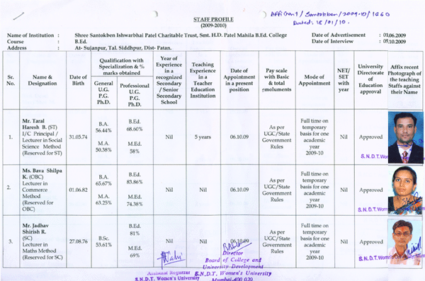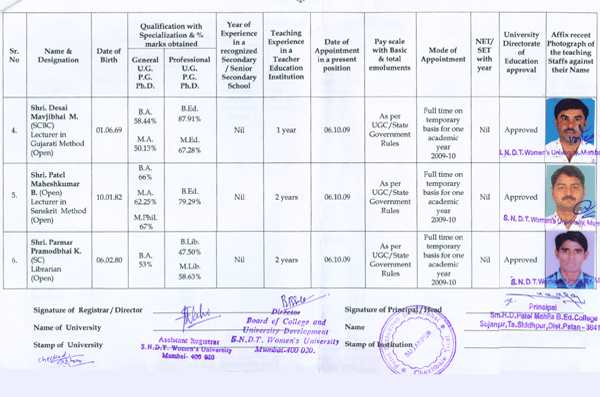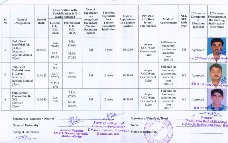Smt. H.D. Patel Mahila B.Ed. College - FACULTY ( STAFF PROFILE)
